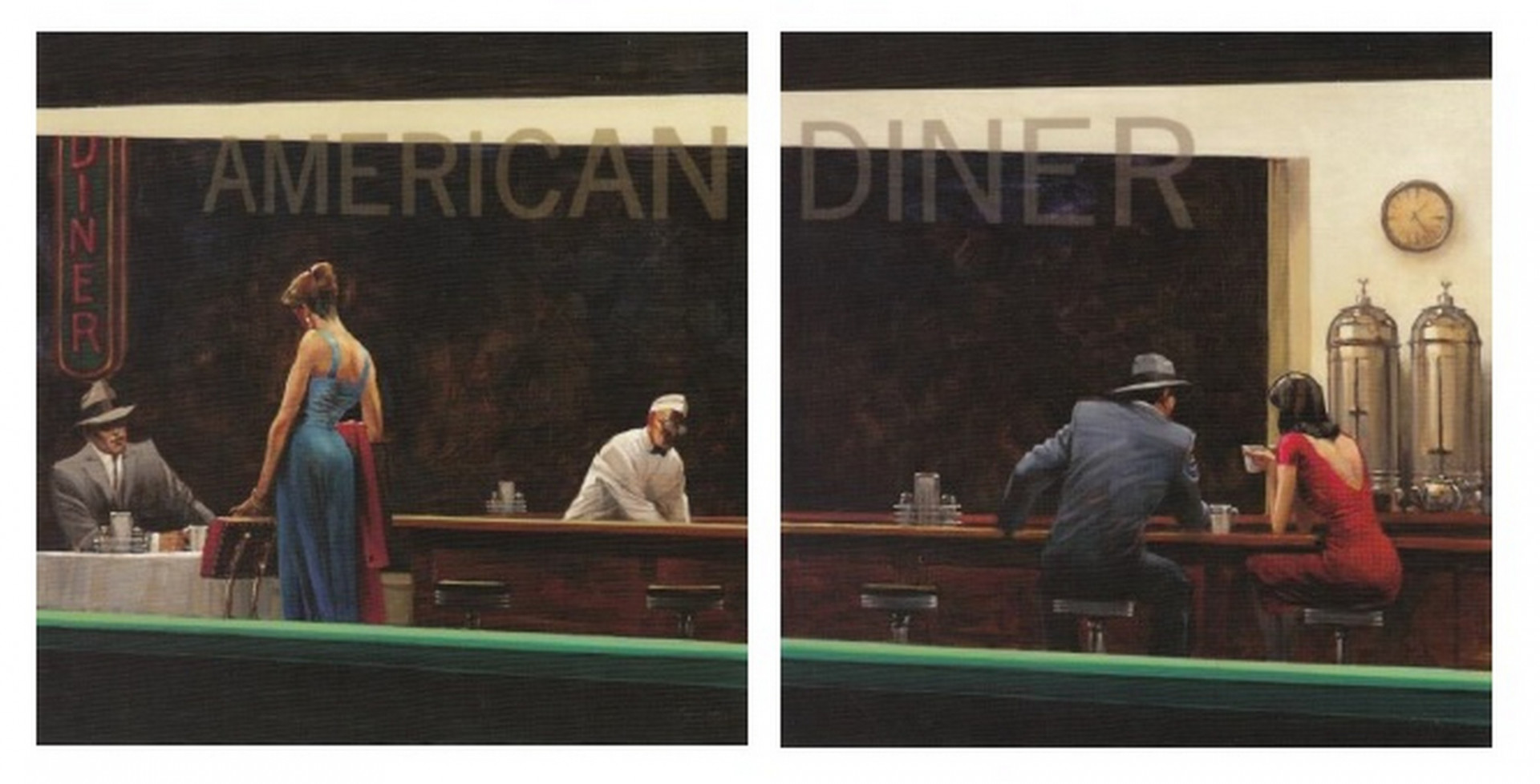 Set obrázků 18x18, american diner, rám bílý s patinou