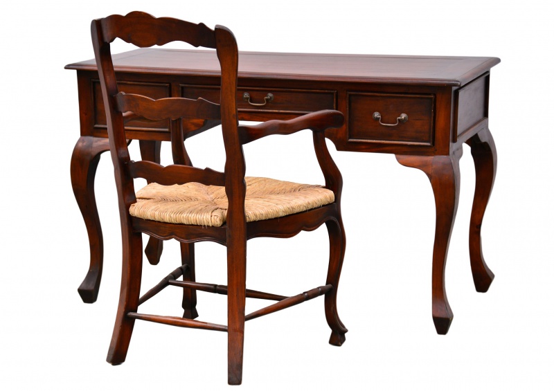 Nedáte dopustit na typicky anglický, zdánlivě strohý, avšak okázalý konzervativní styl? Rustikální set psacího stolu a židle Ladies je ideálním praktickým kouskem právě pro takovéto nátury. Toužíte-li tedy po příjemné a diskrétní, takříkajíc zašívárně, která vám poskytne dostatek komfortu a příležitostí plně se soustředit na práci, neváhejte dlouho. Tento okouzlující vintage rustikální set podpoří svým uhlazeným vzhledem a precizním zpracováním vaši pracovní morálku a nesporně tak zdvihne vaše pracovní výkony. Stolek totiž ve vašem pokoji navodí dokonale autentickou atmosféru starých časů a panských sídel a vy tak můžete nerušeně pracovat a tvořit. Ať už jako vážený oxfordský advokát, či jako významní klasičtí spisovatelé z období viktoriánské Anglie. Set je vyroben z kvalitního mahagonového dřeva v tmavém decentním odstínu s ratanovým sedákem u židle.