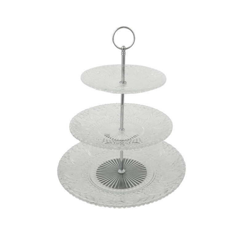 Skleněný stojan na cukroví, chlebíčky a jednohubky - třípatrový.