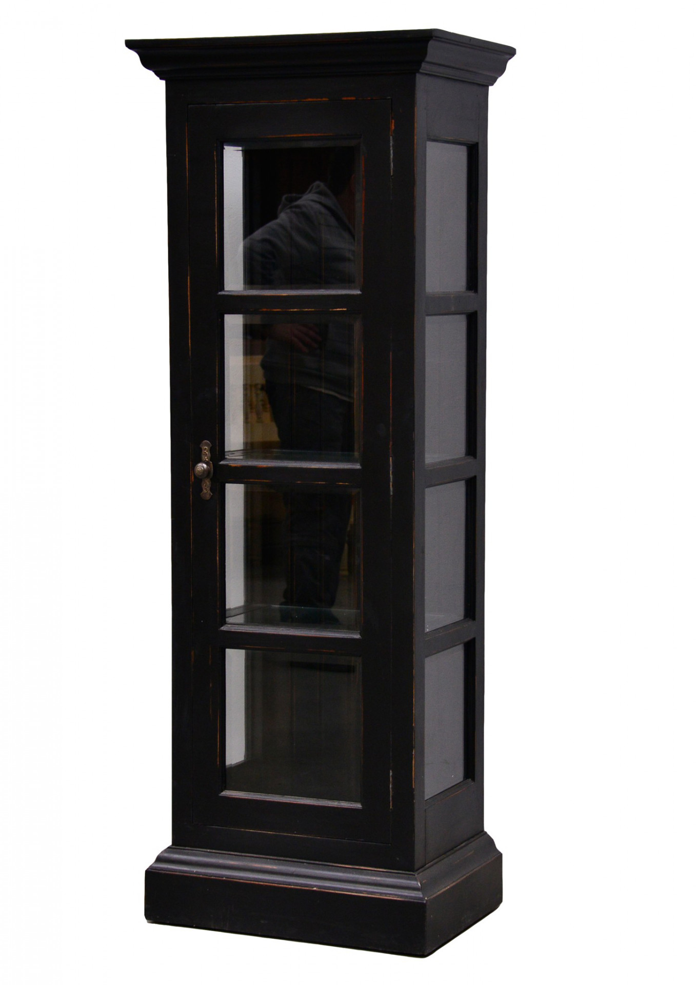 Skleník Ashton v černé patině a probrušovanými hranami je vyroben z mahagonového dřeva, police jsou skleněné, zafrézované do dřeva. Skleník má zdobnou kovovou úchytku a každá tabulka skla je s jemnou pohledovou fazetkou na okraji.