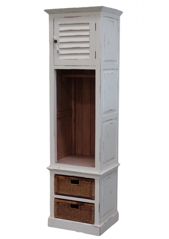 Skříňka Bathroom Locker, vhodná do koupelny či do předsíně, mahagonové dřevo, bílá patina, uvnitř mořená.