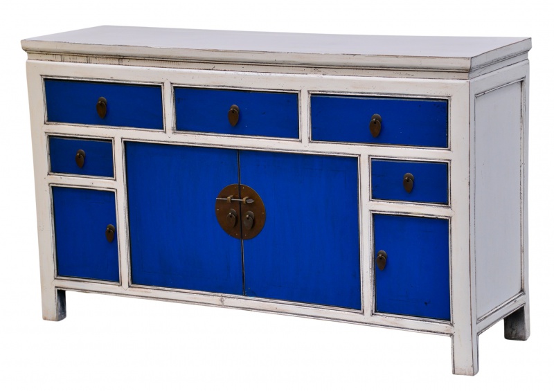 Skříňka z masivního dřeva v bílé barvě, doladí vaši ložnici či obývací pokoj k dokonalosti. Zajímavě řešené úložné prostory i dokonalá kombinace s ostře modrou barvou zajistí, že se vám skříňka neokouká a při každém pohledu na ni se do ní znovu a znovu zamilujete. Provence komodu s pěti zásuvkami a úložným prostorem s dvířky dolaďují kovové úchyty, které tento kousek dovedly k dokonalosti.