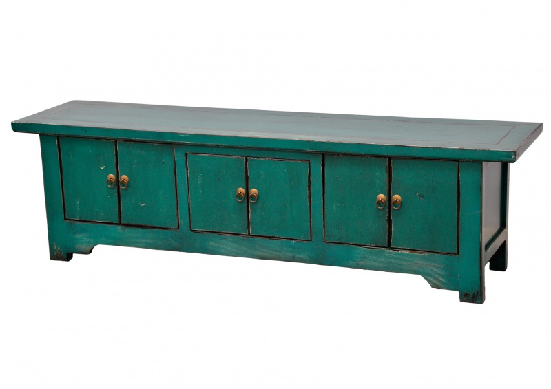 Sháníte ideální kousek pod televizi nebo před postel? Přesně na tyto účely se hodí podlouhlá nízká Provence skříňka tyrkysové barvy z luxusního masivního dřeva. Je rozdělena na tři úložné prostory s dvířky s kovovými úchyty, s velkou odkládací plochou, na kterou můžete postavit televizor, lampu nebo rodinné fotografie. Pusťte do vašeho domova trochu barev!