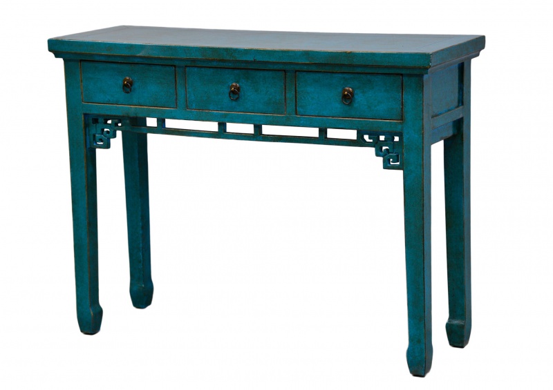 Luxusní Provence stolek v tyrkysové barvě vás dostane! Má krásný lesklý nátěr v příjemném odstínu modré barvy, stylové a vkusné zdobení a tři malé zásuvky, do kterých uložíte všechny důležité drobnosti a dokumenty. Obývací pokoj bude hned o něco útulnější a krásnější a vy se v něm budete cítit jako v domově snů.