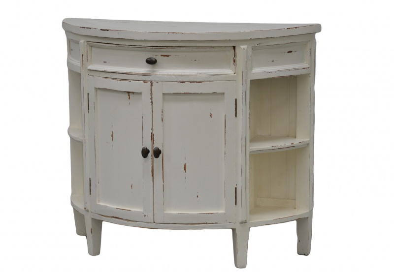 Zbožňujete netradiční kusy nábytku, které nikde jinde neuvidíte? Pak zbystřete a zaměřte svou pozornost na tento nádherný provence stolek Coctail. Už podle názvu je zřejmé, že se báječně hodí do obývacího pokoje pro servírování oblíbených koktejlů dámám a kvalitní whisky mužům. Tento kousek vyrobený z mahagonového dřeva však s přehledem zvládne i funkci komody i odkládacího stolu do vaší ložnice či chodby! Stolek má dvoje dveře, jednu zásuvku a po stranách roztomilé police. Díky netradičnímu oblému tvaru a krásné bílé barvě s jemnou patinou ho budete milovat vy, i každá vaše návštěva!