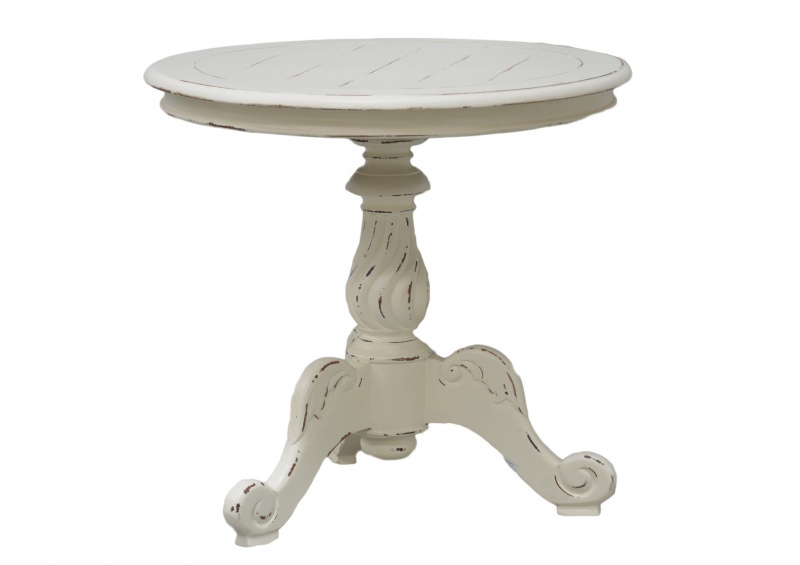 Stolek Cordova má zdobnou a vyřezávanou nohu. Stolek je vyroben z mahagonového dřeva v bílé patině.