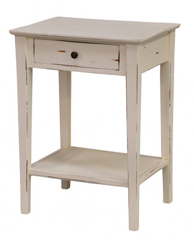 Právě nevinná prostota tohoto malého stolku, je to, co mu vnáší, pro mnohé z nás tak výjimečné kouzlo! Stolek je vyroben z mahagonového dřeva, je barevně laděn do bílé zastřené barvy a má jeden praktický šuplík. Tento vkusný a univerzální stoleček se hodí do jakékoli světle laděné místnosti a pro jakýkoli účel.