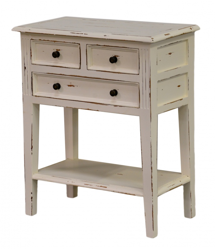 Krásný malý stůl Eton, který je vyroben z kvalitního mahagonového dřeva, je laděn v Provence bílé patině a je vyšperkován krásnými jednoduchými kovovými úchyty. Hodí se do předsíně, obývacího pokoje i pracovny a díky třem praktickým zásuvkám má hned několik využití - nemusí to být pouze podstavec na lampu či květiny, ale i skvělý úložný prostor na dokumenty či drobné nezbytnosti. Zamilujte se do elegance tohoto stolku a zútulněte svůj domov tímto přepychovým kouskem.