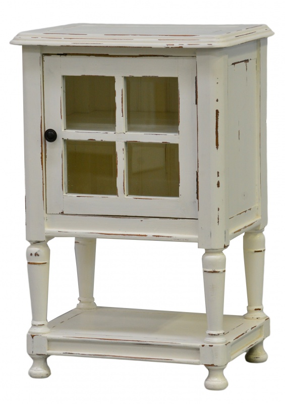 Dokonale propracovaný kus nábytku, který se stane vaší pýchou? Takový tento stolek rozhodně je. Rafinovaně řešený úložný prostor se skříňkou v horní a poličkou ve spodní části stolku, z něj dělají ideální kousek do ložnice i obýváku. Stolek má 4 decentně zdobené vyšší nohy, bílou patinu a krásná prosklená dvířka.