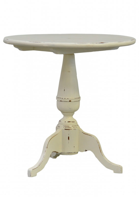 Nádherný stolek v Provence stylu doladí každou místnost k dokonalosti. Je jen na vás, zdali ho zvolíte za konferenční nebo noční stolek, nebo z něj uděláte nádhernou plochu na květiny či lampu. Stolek má originálně zpracovanou stabilní nohu a kulatou desku, je vyroben z mahagonu a natřen bílou barvou s decentně oprýskaným efektem.