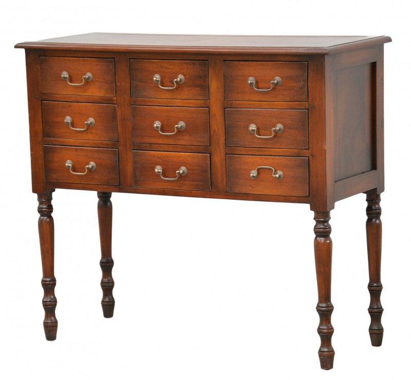 Stolek Tucker má 9 zásuvek, stolek je subtilní a je vyroben z mahagonového dřeva.