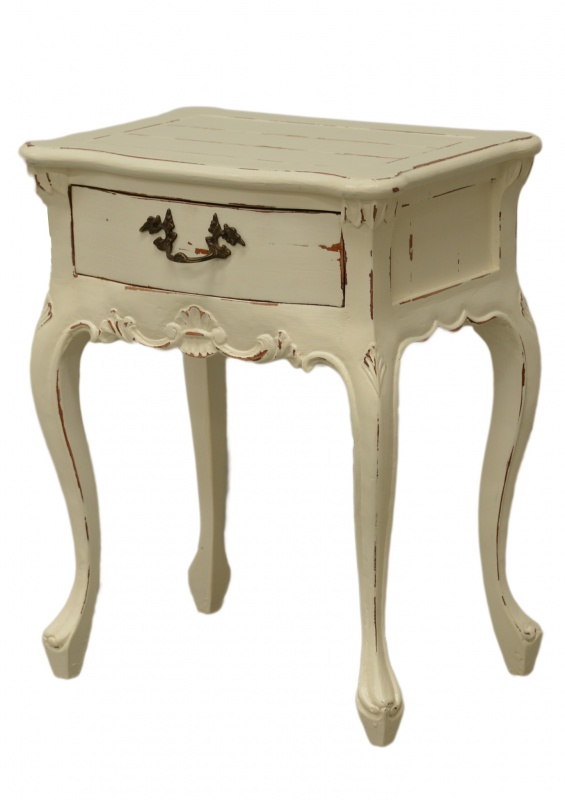 Robustní a přepychový provence stolek z mahagonu v bílém odstínu si vás získá nejen svou kvalitou a funkčností, ale i krásnými zdobenými okraji, které byly ručně vyřezávány. V kombinaci se zdobenými kovovými úchyty dělají tyto řezby ze stolku kus nábytku, který povýší vaši ložnici na zámeckou komnatu, do které se budete každý den těšit.