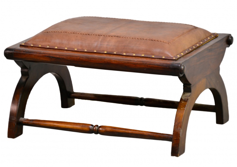 Taburet s pevnou masivní konstrukcí z mahagonového dřeva v kůži vhodně doplňuje křeslo Lazy v naší nabídce.