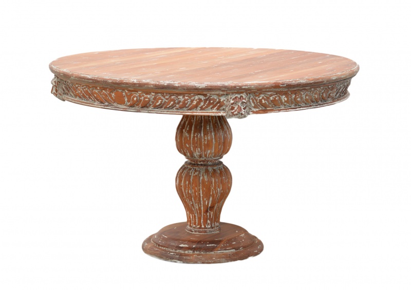 Jídelní stůl Gothic je vyroben z mahagonového dřeva, má na lubu desky a na noze vyřezávané motivy, povrch je patinován.