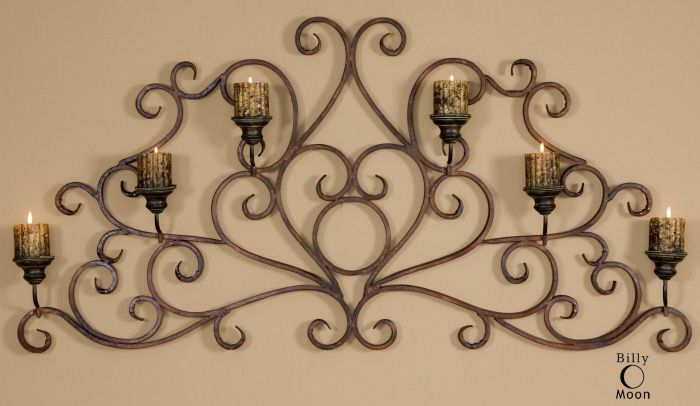 Svícen Juliana, nástěnný kovový svícen se svíčkami.