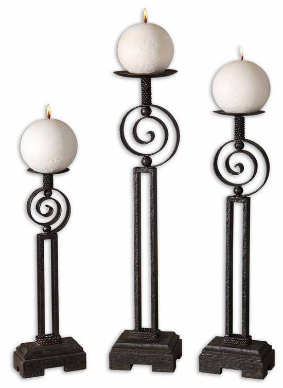 Kovový svícen a kulatá svíce, na obrázku zobrazen celý set, předmět koupě je nejvyšší svícen.