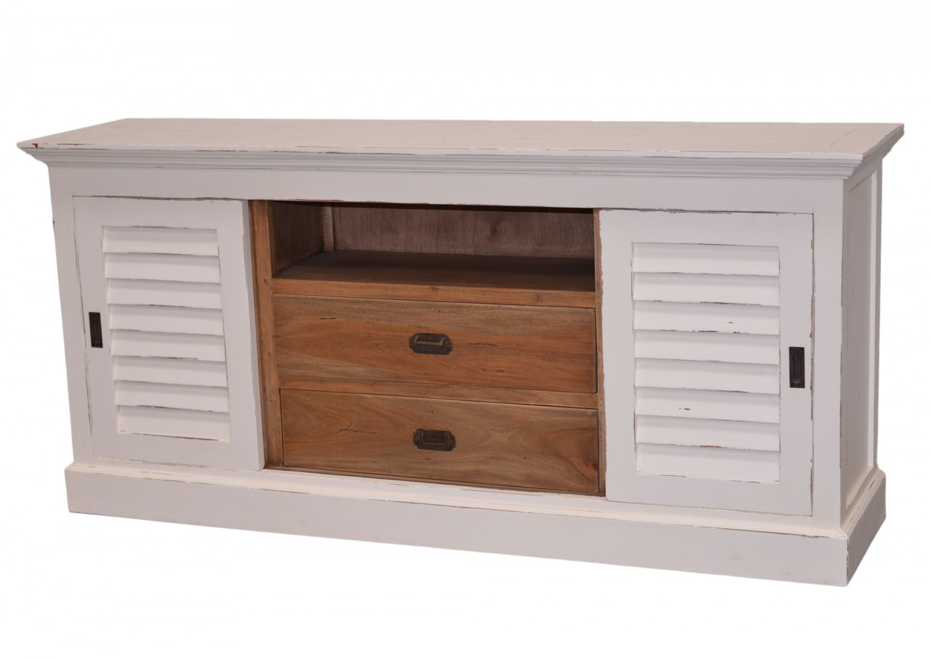 Máte před sebou nádherný televizní stolek z kvalitní výroby, který by určitě neměl ujít vaší pozornosti. Kombinace vzdušných provence dvířek v bílé zastřené patině a přírodně mahagonových zásuvek spolu vytváří originální a nadčasový design, díky němuž bude tento kousek lahodit každému útulnému, moderního interiéru.