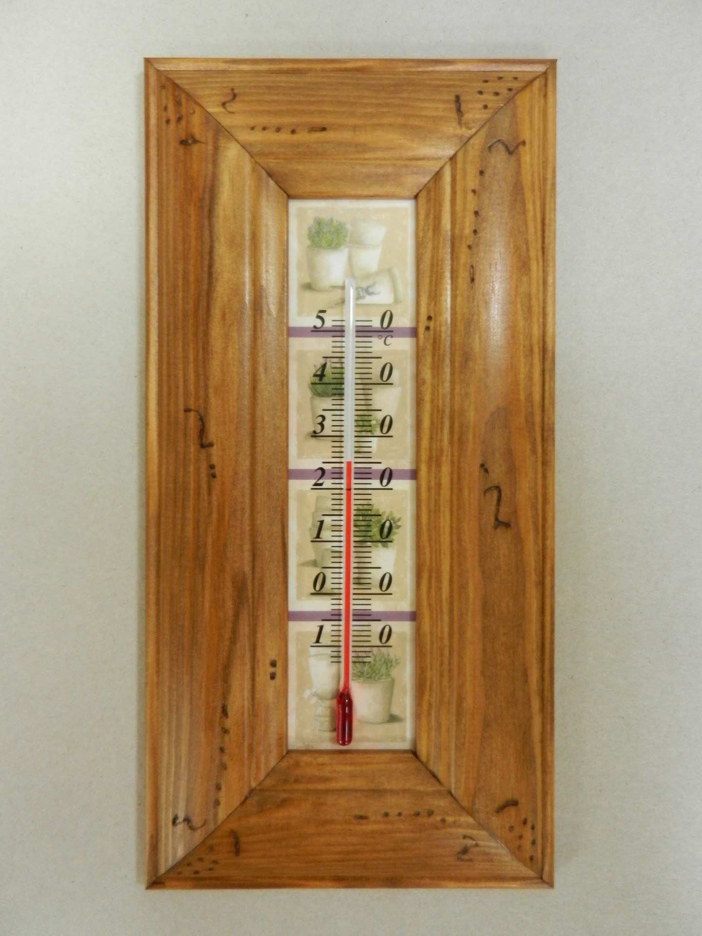 Popis produktu:Teploměr zarámovaný v ručně vyrobeném rámu.