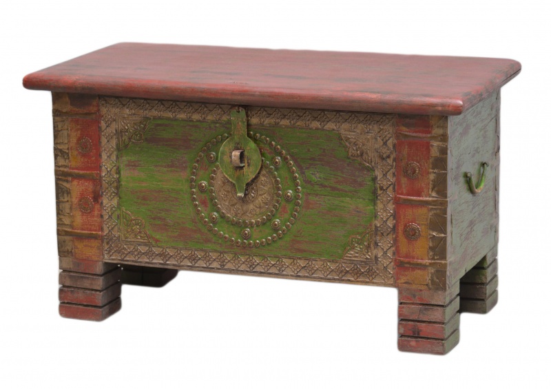 Milujete luxusní neokoukané kousky nábytku, které nikdo jiný nemá a které dodají vašemu domovu nejen nádech přepychu, ale zároveň exotiky a orientu? Tato nádherná červeno-zelená Vintage truhla je právě pro vás! Hodí se do jakékoliv místnosti i interiéru a rozjasní i ten nejtemnější kout vašeho domu. Tento netradiční kousek má krásně zpracovanou patinu a zlaté a červené zdobení, které mu jen dodávají na eleganci a luxusním vzhledu.