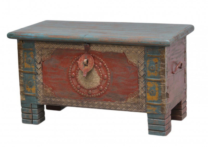 Milujete luxusní neokoukané kousky nábytku, které nikdo jiný nemá a které dodají vašemu domovu nejen nádech přepychu, ale zároveň exotiky a orientu? Tato nádherná modro-červená Vintage truhla je právě pro vás! Hodí se do jakékoliv místnosti i interiéru a rozjasní i ten nejtemnější kout vašeho domu. Tento netradiční kousek má krásně zpracovanou patinu a zlaté a červené zdobení, které mu jen dodávají na eleganci a luxusním vzhledu.Rozměry: