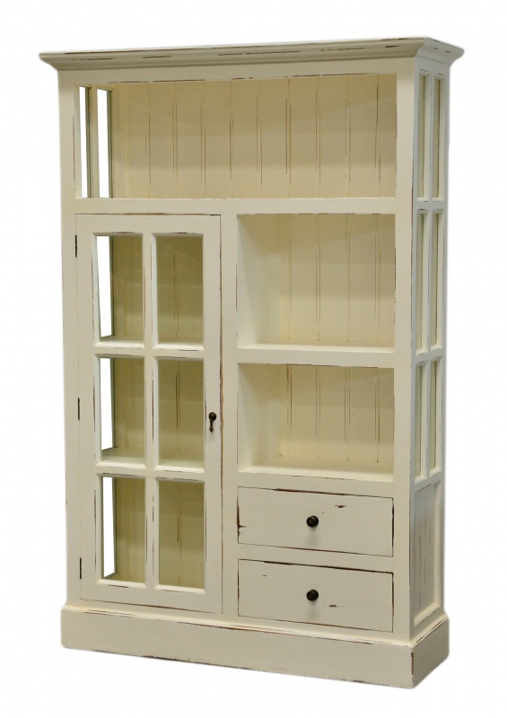 Dobře si prohlédněte tuto překrásnou vitrínu bílé barvy laděnou do úchvatného stylu Provence! Ta vám kromě jemného elegantního designu přinese také ideální místo pro vystavení vašich rodinných fotek a bytových dekorací, či pro uložení vašich oblíbených knih. A to právě díky velmi prakticky řešenému designovému uspořádání. Skvěle vám poslouží kombinace prosklenými dvířky uzavřeného prostoru, tří otevřených polic a dvou elegantních šuplíčků. Vyjma toho vám také může oddaně sloužit po dlouhá léta, tuto přednost jí určuje velmi kvalitní materiál, ze kterého je vyrobena – mahagonové dřevo.