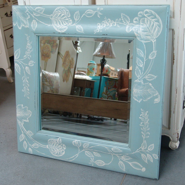 Modré čtvercové zrcadlo Architrave s motivem květin je perfektní prvek do Vašeho interiéru.
