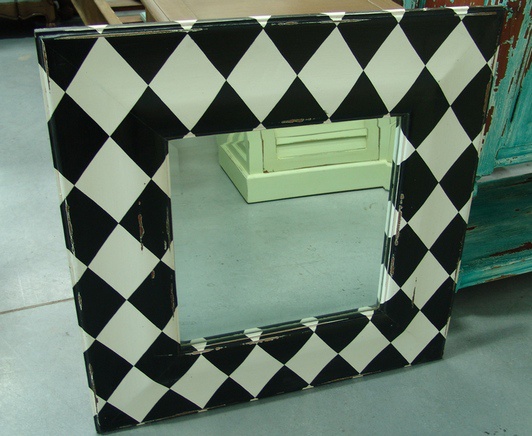 Zrcadlo Architrave, kárované, černo-bílé kostky, malé.